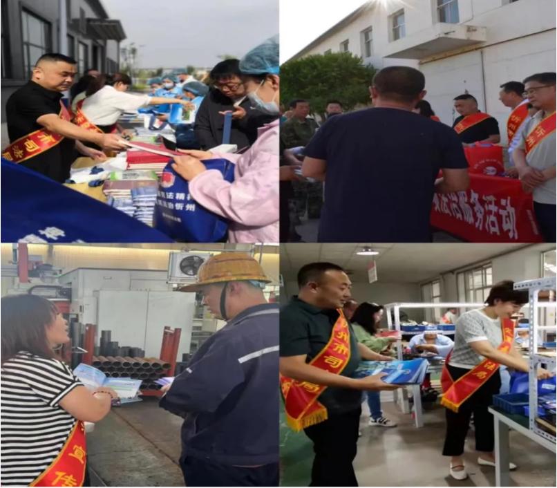 法律服務(wù)團(tuán)向企業(yè)管理人員及職工發(fā)放《憲法》500本、《民法典》以及《民法典進(jìn)企業(yè)》10000本、《合同法》5000本、《山西省優(yōu)化營商環(huán)境條例》4000本、以及《行政復(fù)議法》400本和其他法律法規(guī)書籍;發(fā)放公證證明材料清單1000本、100份便民聯(lián)系卡和法律政策明白卡,毛巾300份、圍裙300份、水杯300個、筆記本300本、雨傘100把等法治宣傳用品。同時,講解法律案例,宣講涉企公證、鑒定和仲裁知識,將法治宣傳與企業(yè)日常生產(chǎn)、經(jīng)營管理以及員工生活聯(lián)系起來,為企業(yè)發(fā)展?fàn)I造良好法治環(huán)境。