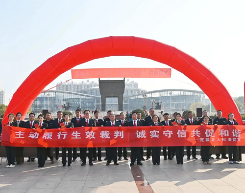 為切實(shí)將勝訴當(dāng)事人的“紙上權(quán)益”轉(zhuǎn)化為“真金白銀”,有效敦促被執(zhí)行人主動(dòng)履行法律義務(wù),積極營(yíng)造“守信光榮、失信可恥”的良好社會(huì)氛圍,10月29日,定襄法院在金鼎廣場(chǎng)舉行“執(zhí)行宣傳周”啟動(dòng)儀式。定襄法院黨組書記、院長(zhǎng)張曉峰出席啟動(dòng)儀式,執(zhí)行局全體干警及相關(guān)部門負(fù)責(zé)同志參加活動(dòng)。