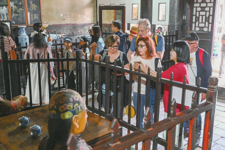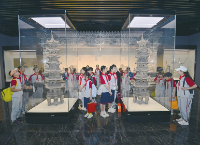 5月18日,太原市清徐縣山西晉韻文化產(chǎn)業(yè)園內(nèi),中小學(xué)生研學(xué)團(tuán)在磚雕藝術(shù)博物館與古建筑模型博物館內(nèi)感受古建筑的匠心巧思。本報記者王瑞瑞攝